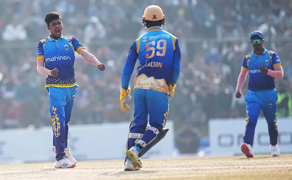चाडविक वाल्टनले अविजित ४६ रन जोडे । २३ बल खेलेका उनले ४ चौका र ३ छक्का प्रहार गरे । जिसन मक्सुदले १४ रन योगदान गरे ।ओपनर रित गौतम र गुल्सन झाले खाता खोल्न सकेनन् । बलिङमा चितवनका सोहेल तनविरले २ तथा रवि बोपारा र कप्तान कुशल मल्लले समान एक विकेट लिए ।
