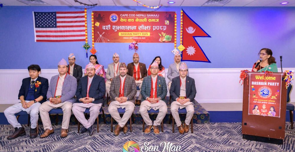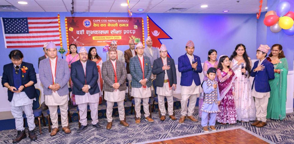 केप कड । नेपाली समाजले आयोजना गरेको दशैं शुभकामना साँझ, २०८२ समाजका अध्यक्ष, केबी राईको सभापतित्वमा यही सेप्टेम्बर महिनाको २६ तारीख, शनिवारका दिन केप कड, हायनिसस्थित Cape Cod Irish Village मा भब्यताका साथ सम्पन्न गरिएको थियो। समाजका महासचिव इच्छा खड्का र सचिव सरस्वती खनालले संयुक्त रूपमा कार्यक्रम संचालन गर्नुभएको थियो।