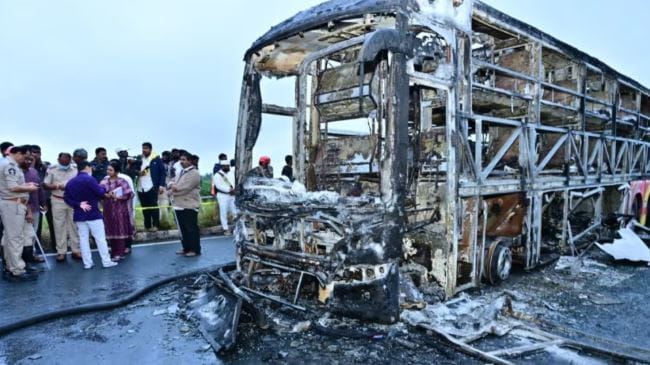 हैदरावादबाट बैंलौर जाँदै गरेको बसमा भयानक आगलागी, कम्तिमा १२ को मृत्यु, दर्जन बढी वेपत्ता