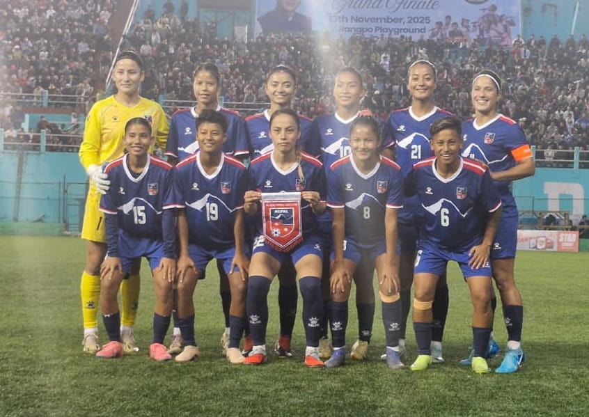 १२ कात्तिक, काठमाडौं । मैत्रीपूर्ण महिला फुटबल खेलमा नेपालले भारतलाई पेनाल्टीसुटआउटमा पराजित गरेको छ । सिक्किमको पाल्जोर स्टेडियममा बुधबार भएको अनअफिसियल मैत्रीपूर्ण खेलमा नेपालले भारतलाई पेनाल्टीसुटआउटमा ३–० ले पराजित गरेको हो । निर्धारित ९० मिनेटको खेल १–१ को बराबरीमा सकिएपछि विजेताको निर्णय पेनाल्टीसुटआउटबाट भएको हो । जहाँ अन्जना राना मगर नायक बन्दै दुई पेनाल्टी बचाइन् ।