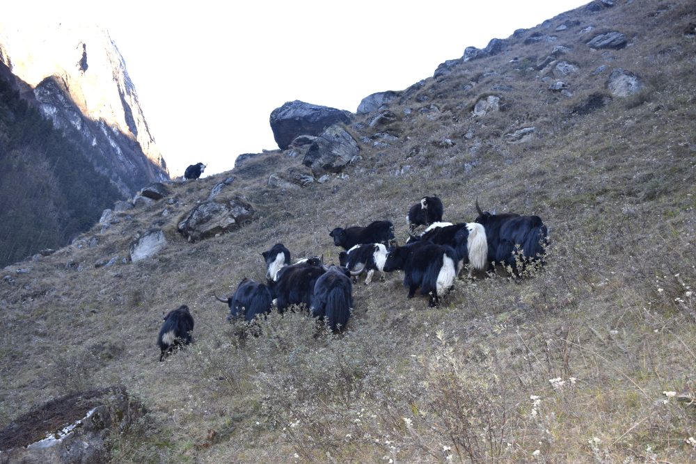 ९ मंसिर, काठमाडौं । बझाङको साइपाल गाउँपालिका–४स्थित साइपाल पाटनमा चर्दै गरेका चौँरीहरू । ४ हजार मिटरको उचाइमा रहेको पाटन आसपासमा हिउँदमा पनि चौँरीहरू चर्ने र खुला आकाशमा बास बस्ने गर्दछन् । यो ठाउँमा जिल्ला सदरमुकाम चैनपुरबाट ७ दिनको पैदलयात्रापछि पुगिन्छ । तस्बिरहरु : भूमिराज पिठातोली (रासस)
