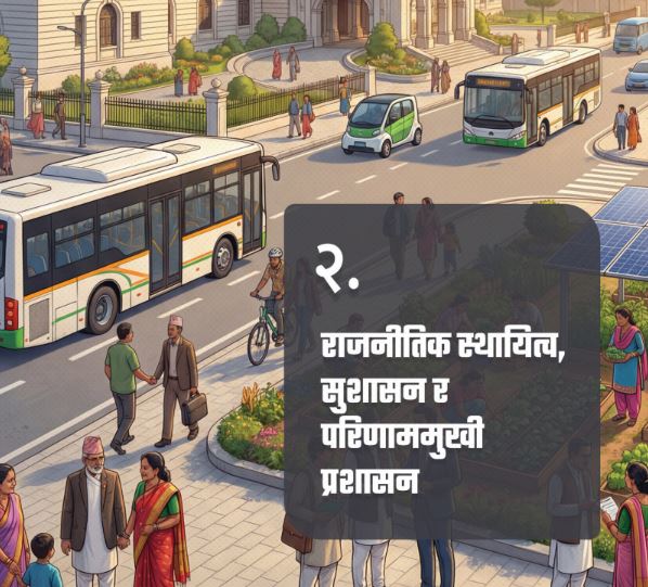 प्रतिबद्धतापत्रमा आर्थिक सुधारको नयाँ चरणलाई विशेष जोड दिइएको छ । आयात–व्यापार तथा उपभोगमुखी अर्थतन्त्रबाट उत्पादनमुखी, आत्मनिर्भर तथा समावेशी मोडलमा ‘सिफ्ट’ गर्ने विषयलाई प्रतिबद्धता पत्रमा समेटिएको छ । ‘नयाँ चरणको आर्थिक सुधार’ र सामाजिक न्यायसहितको समृद्धिलाई विशेष जोड दिएर पार्टीले स्वाधिन र समृद्ध नेपाल निर्माणको मार्गचित्र तयार गर्ने गर्ने अग्रसरता लिएको छ । राजनीतिक स्थायित्व, सुशासन र परिणाममुखी प्रशासनका लागि विशेष पहल गर्ने प्रतिबद्धता पत्रमा व्यक्त गरिएको छ । सार्वजनिक, सहकारी र निजी क्षेत्रको सहकार्यमा तीनखम्बे आर्थिक नीति अवलम्बन गरिनेछ ।