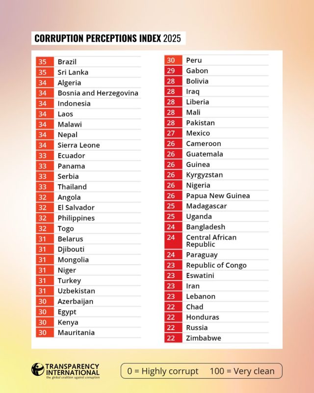 विश्वव्यापी औसत अङ्क गत वर्षको तुलनामा एक अङ्कले घटेर ४२ मा झरेको छ । सूचकाङ्कअनुसार १०० अङ्क अत्यन्त पारदर्शी र ० अङ्क अत्यधिक भ्रष्ट अवस्थालाई जनाउँछ । एक दशकअघि सूचकाङ्कमा ८० भन्दा बढी अङ्क प्राप्त गर्ने देशको सङ्ख्या १२ रहेकामा सन् २०२५ मा घटेर पाँचमा सीमित भएको छ । टिआईका अनुसार सन् २०१२ यता ५० भन्दा बढी देशमा भ्रष्टाचार नियन्त्रणको अवस्था कमजोर बन्दै गएको देखिन्छ भने सुधार देखाउने देशको सङ्ख्या ३१ मात्रै रहेको छ । समग्रमा विश्वका दुई तिहाइ देशले ५० भन्दा कम अङ्क प्राप्त गरेका छन् ।